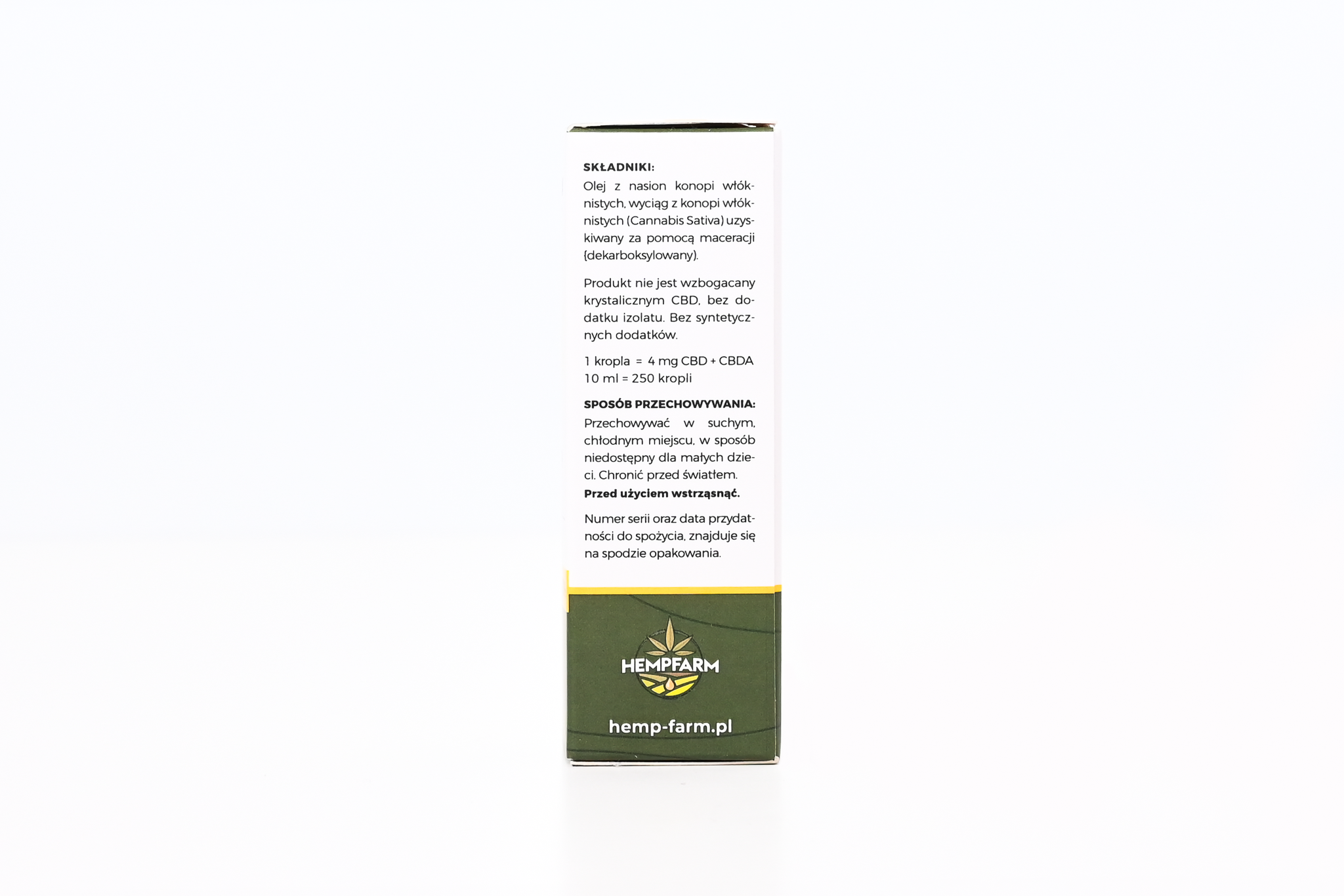 Poznaj dr.Hemp „Olejek CBD 10%” Full Spectrum – wysokiej jakości ekstrakt konopny, wytwarzany w oparciu o macerację alkoholową kwiatostanów konopi siewnych pochodzących z naszej certyfikowanej, ekologicznej uprawy. Dzięki temu masz pewność, że otrzymujesz czysty, skuteczny i w 100% naturalny produkt – bez dodatków, bez izolatu, bez kompromisów.